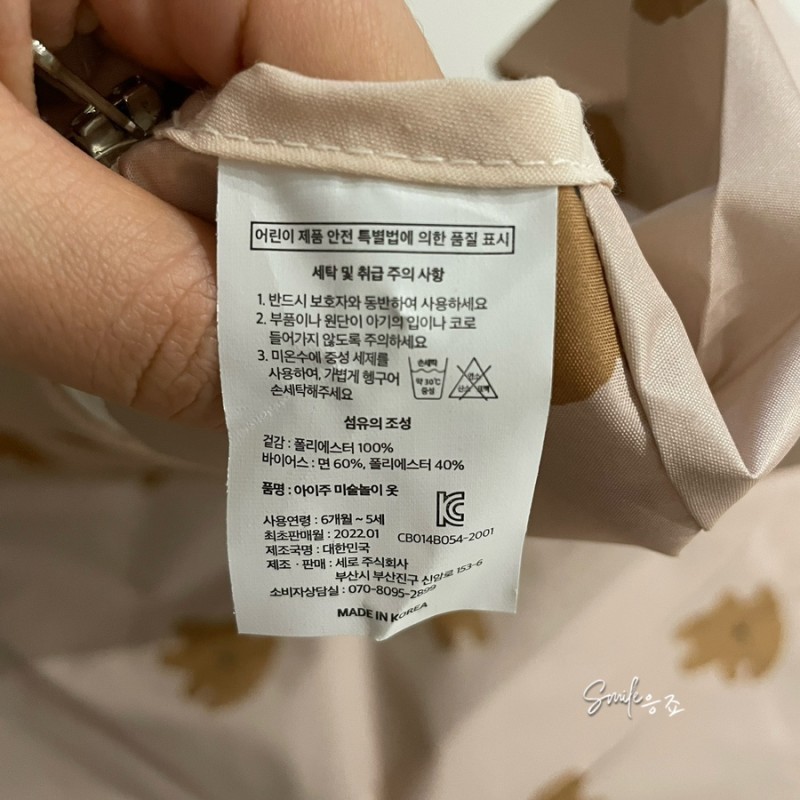 저는 촉감놀이를 위해 아이주 미술가운을